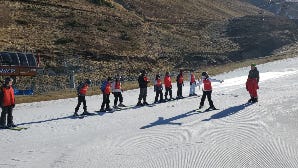 Le groupe des initié.e.s a exploré une plus grande partie de la station et s'est testé sur une piste noire.