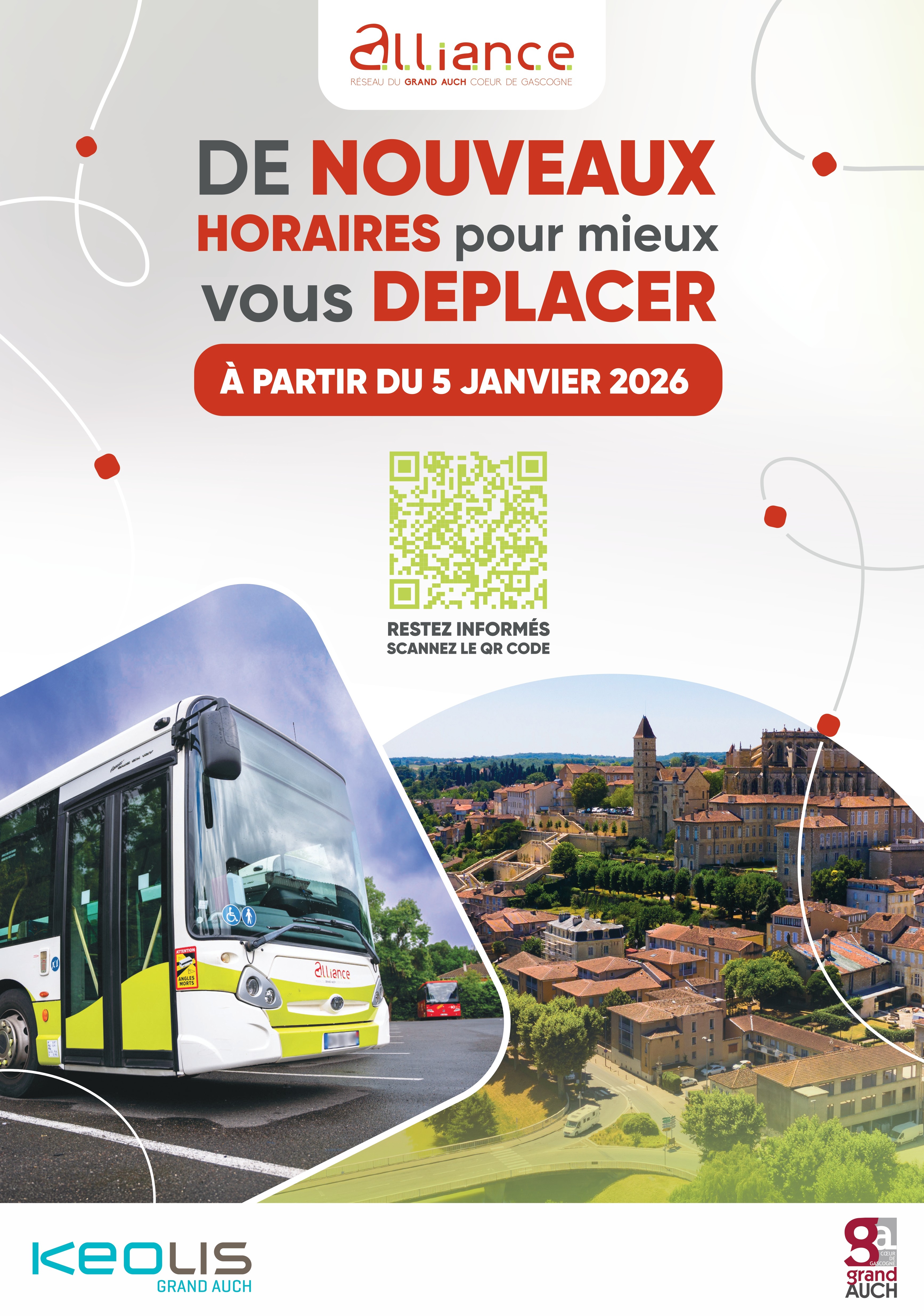 Nous souhaitons vous informer qu’à partir du 5 janvier 2026, des ajustements d’horaires seront apportés sur le réseau de bus Alliance, afin de fluidifier les déplacements des usagers et d’améliorer la qualité du service.