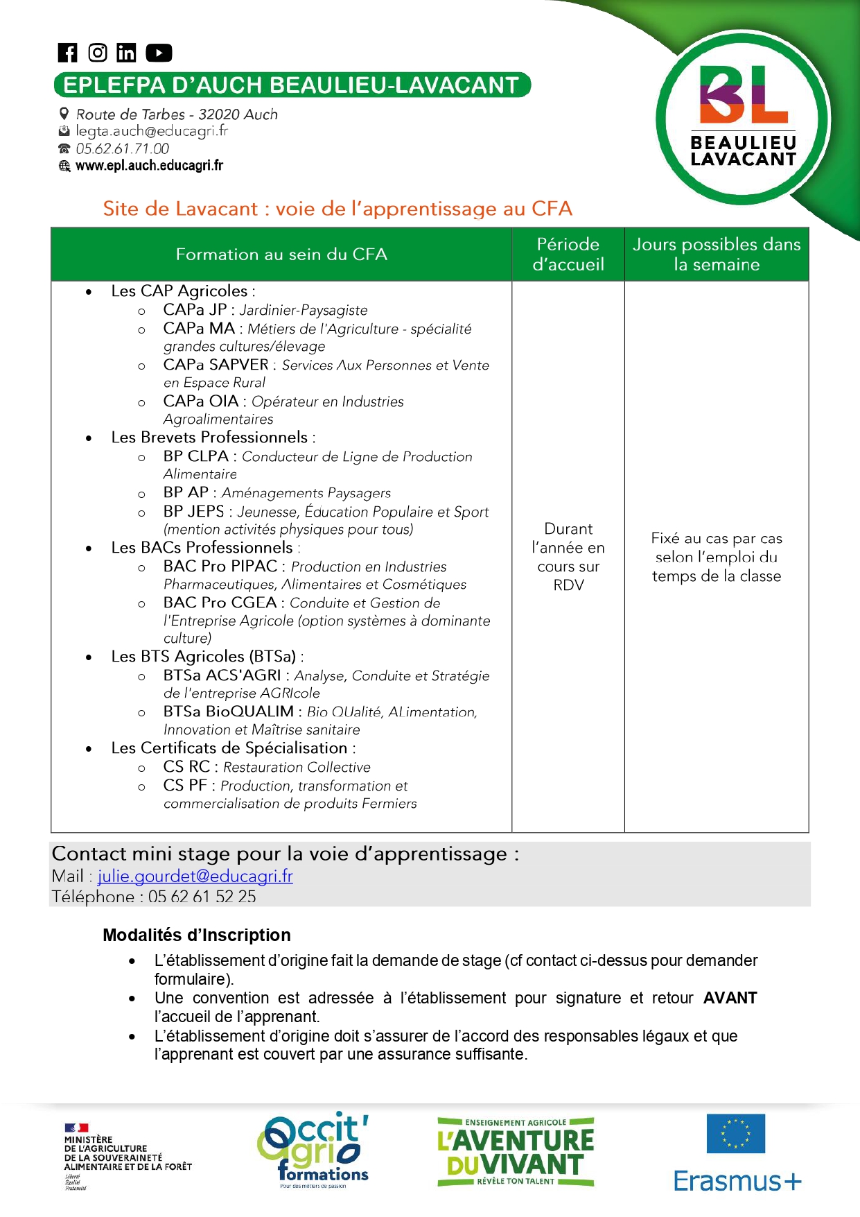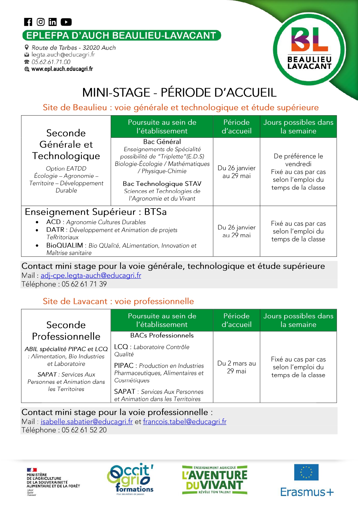 - PÉRIODE + CONTACT MINI STAGE 2026 - EPL BEAULIEU LAVACANT