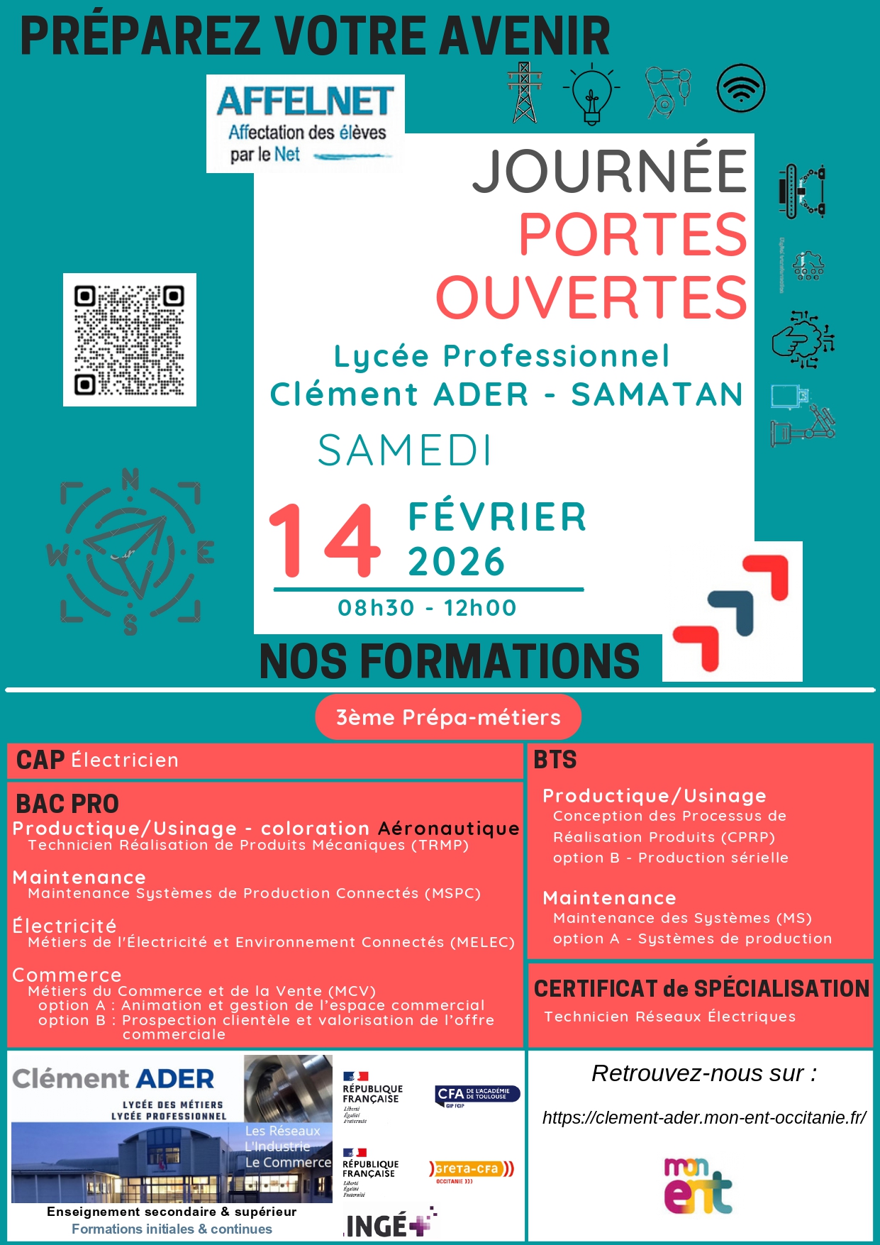 Elèves de 3ème : orientation, mini-stages en Lycées professionnels, portes ouvertes : Lycée Pardailhan , Lycée Beaulieu Lavacant, Lycée Clément Ader de SAMATAN, Lycee REFFYE de TARBES