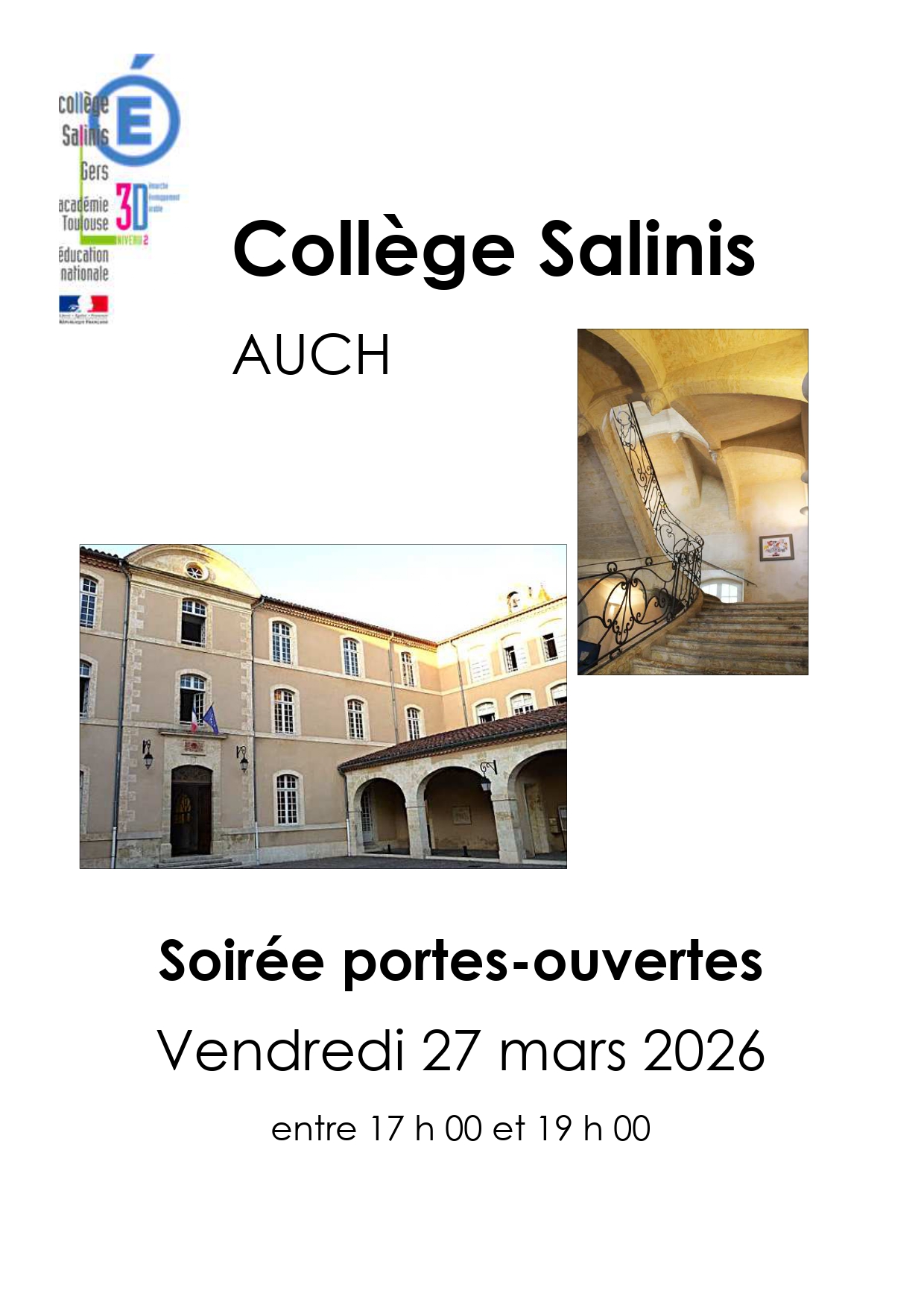 JPO collège Salinis vendredi 27 mars 2026 17h-19h